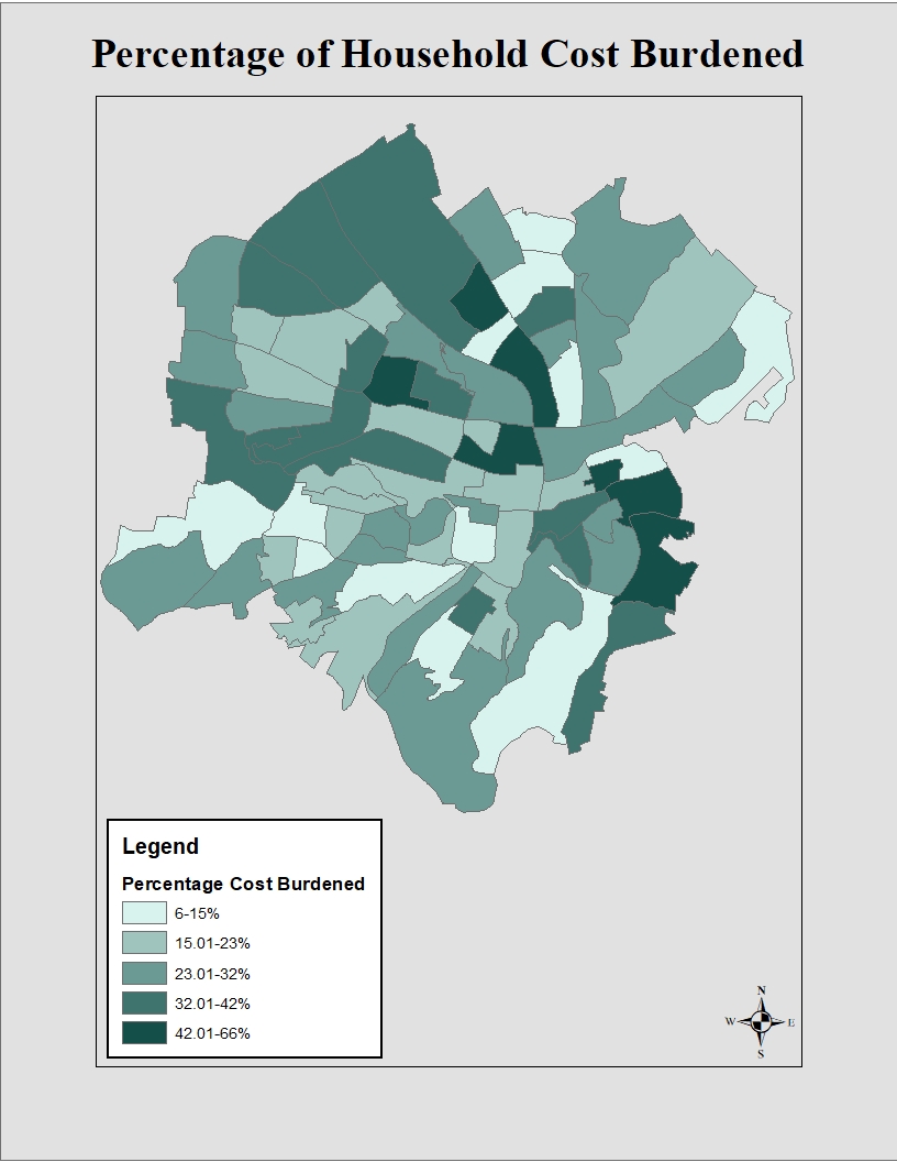 Discussions about affordable housing often lead to the question of ‘Affordable for whom?’ Regional variation in incomes and housing costs can be accounted for when determining affordability by assessing how many and to what extent households are cost burdened by their housing expenses. Cost burdened is defined as spending more than 30% of household income on housing.